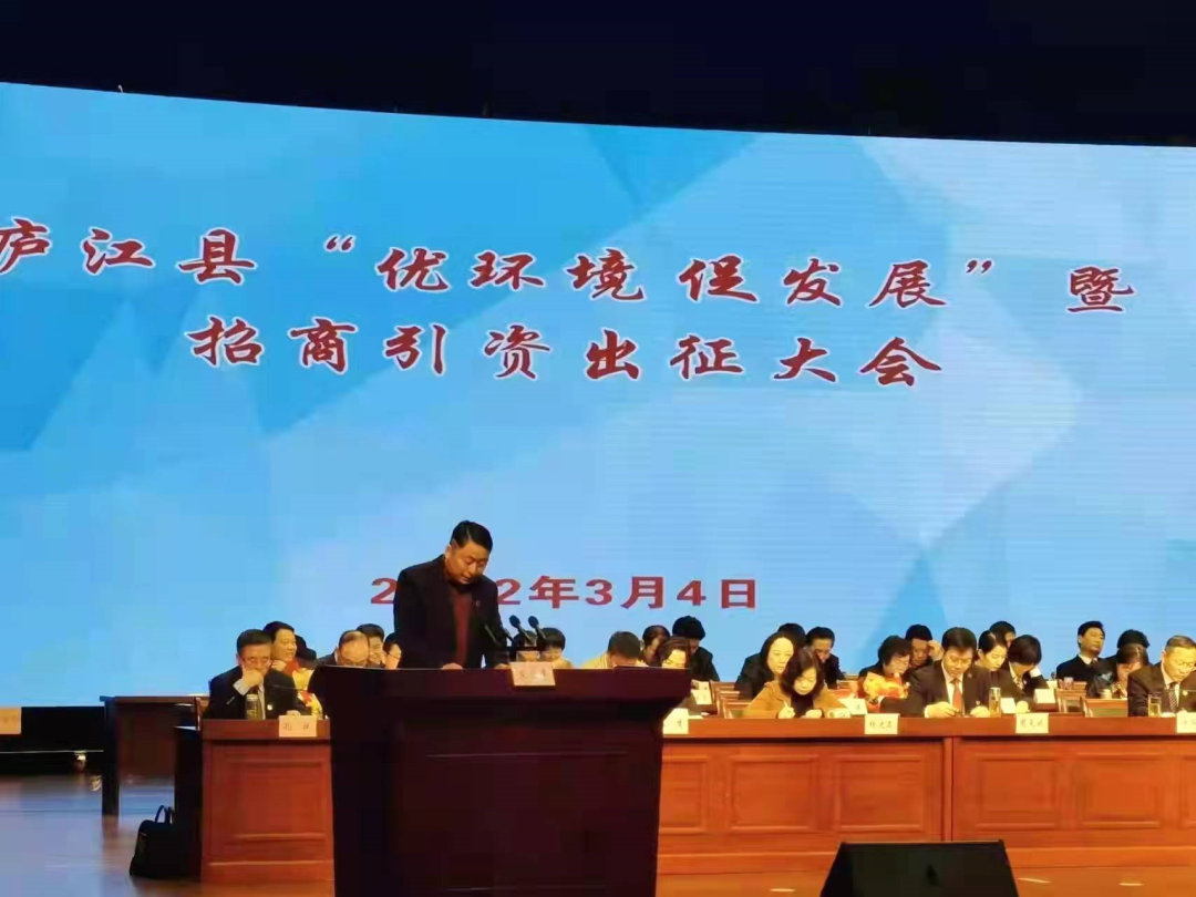 2022年3月4日,廬江縣“優(yōu)環(huán)境 促發(fā)展”暨招商投資出征大會(huì)在廬江大劇院1號(hào)廳舉辦,由縣委副書記、縣長周天斌主持召開。