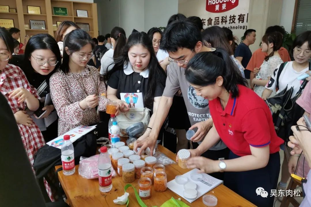 同學(xué)們?cè)谛菹⒅?,大家一起合影留念。我公司為學(xué)生們提供了多種口味的肉松請(qǐng)學(xué)生們來品嘗,使其更加直觀了解我公司食品制作技術(shù)的成果。